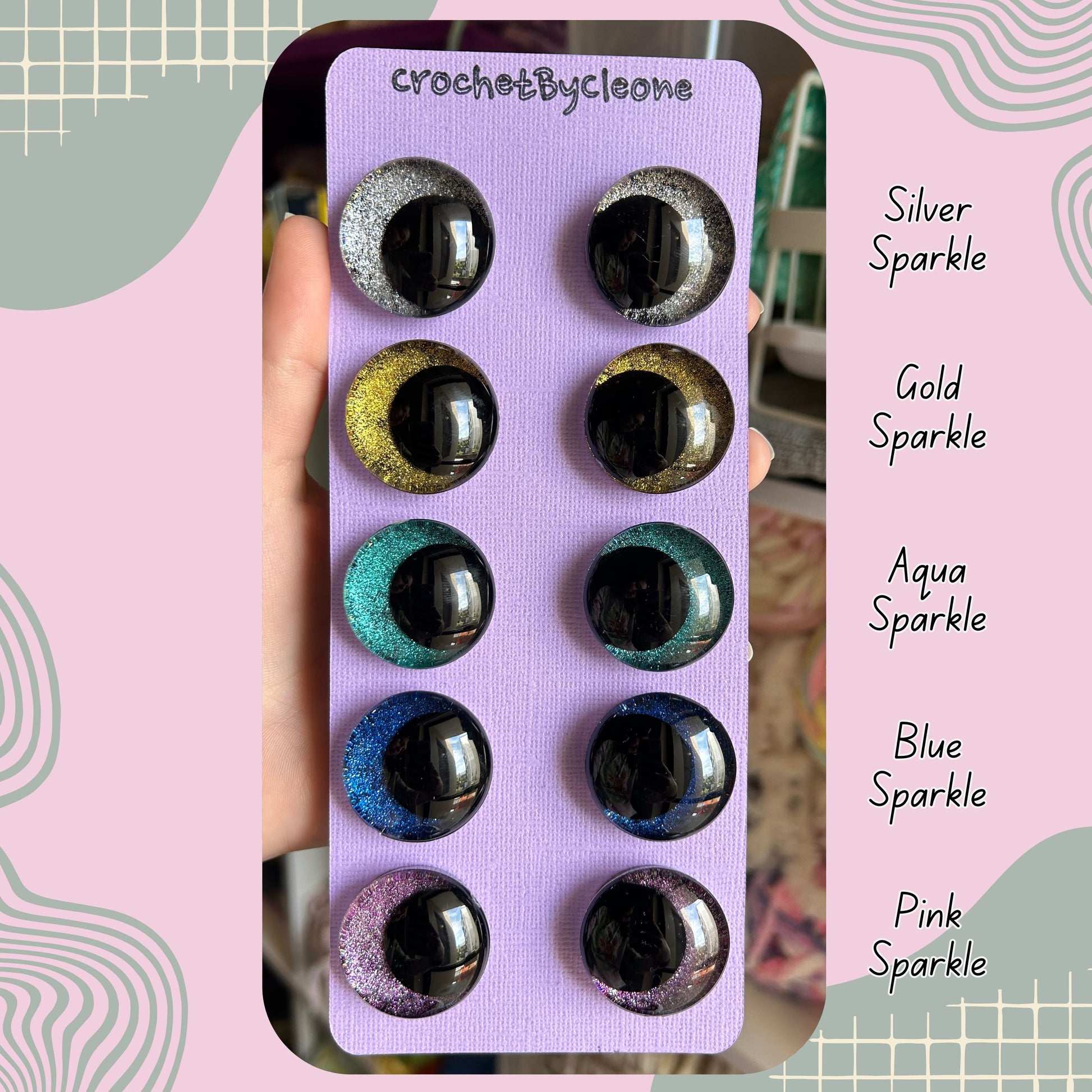 Enhance your handmade crochet toys with our Hand Painted Safety Eyes from the Glitter Collection. Featuring kawaii-style black pupils in sizes ranging from 12mm to 18mm, these eyes add a charming, expressive touch to your creations. Designed for secure attachment, they ensure safety and durability, making them ideal for toys intended for all ages. Perfect for crafters seeking expert-quality details that bring personality and sparkle to every project.