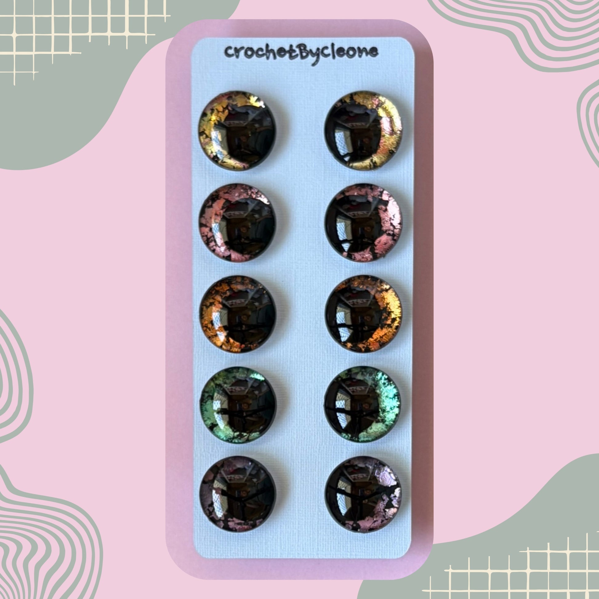 Enhance your handmade crochet toys with our Hand Painted Safety Eyes from the Medoran Collection. Featuring kawaii-style black pupils in sizes ranging from 12mm to 18mm, these eyes add a charming, expressive touch to your creations. Designed for secure attachment, they ensure safety and durability, making them ideal for toys intended for all ages. Perfect for crafters seeking expert-quality details that bring personality and sparkle to every project.