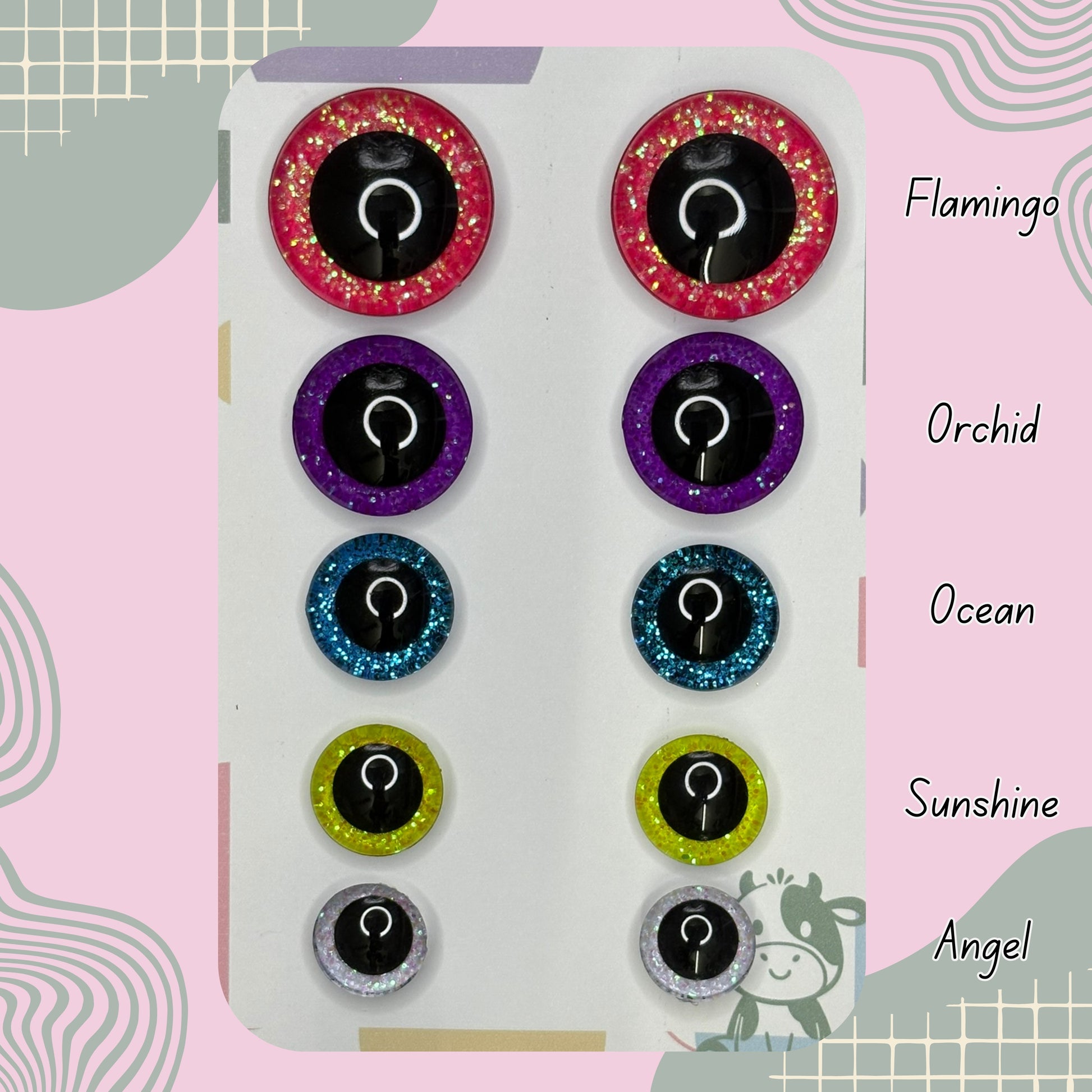 Enhance your handmade crochet toys with our Hand Painted Safety Eyes from the Neon Collection. Featuring centered-style black pupils in sizes ranging from 20mm to 35mm, these eyes add a charming, expressive touch to your creations. Designed for secure attachment, they ensure safety and durability, making them ideal for toys intended for all ages. Perfect for crafters seeking expert-quality details that bring personality and sparkle to every project.