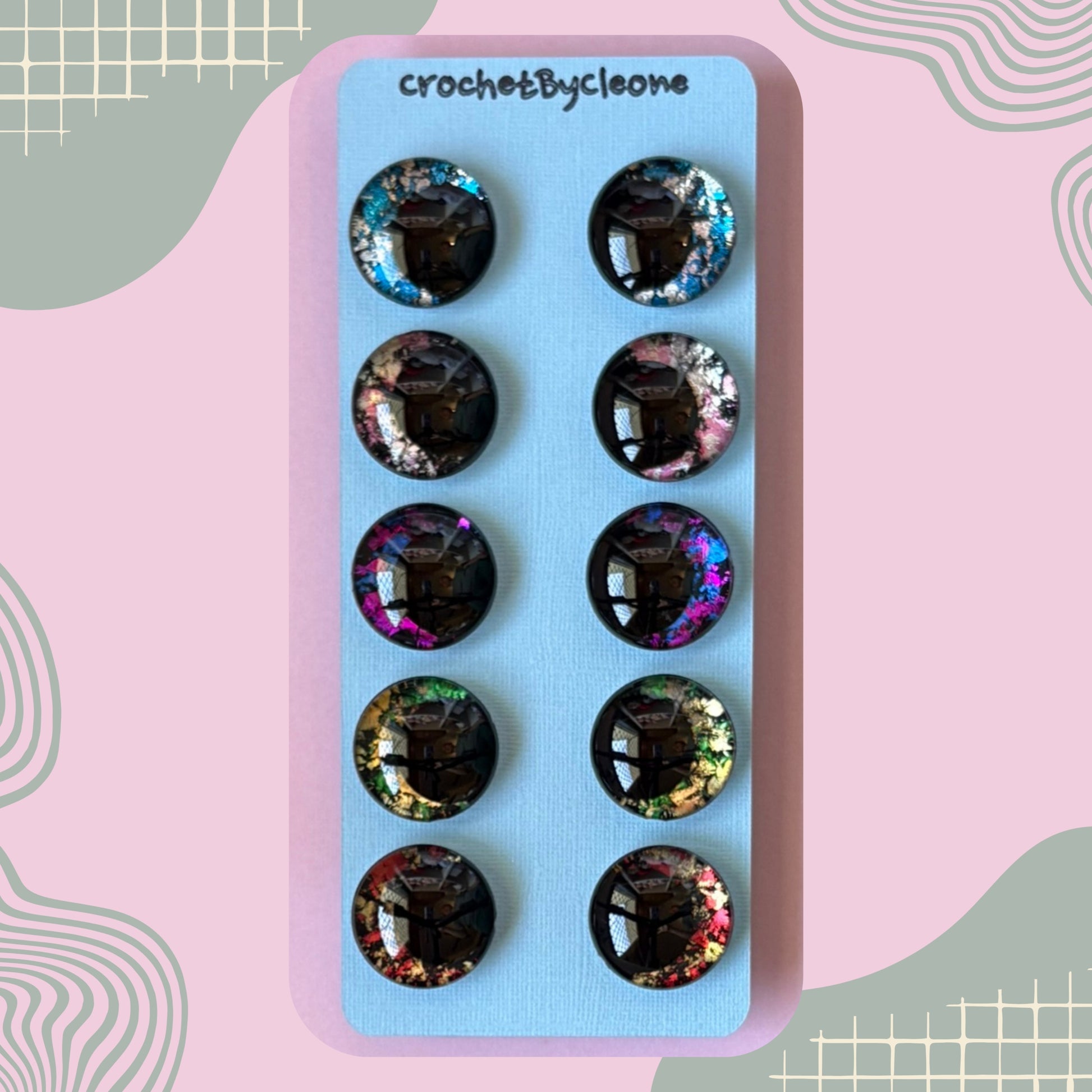 Enhance your handmade crochet toys with our Hand Painted Safety Eyes from the Tia Auran Collection. Featuring kawaii-style black pupils in sizes ranging from 12mm to 18mm, these eyes add a charming, expressive touch to your creations. Designed for secure attachment, they ensure safety and durability, making them ideal for toys intended for all ages. Perfect for crafters seeking expert-quality details that bring personality and sparkle to every project.